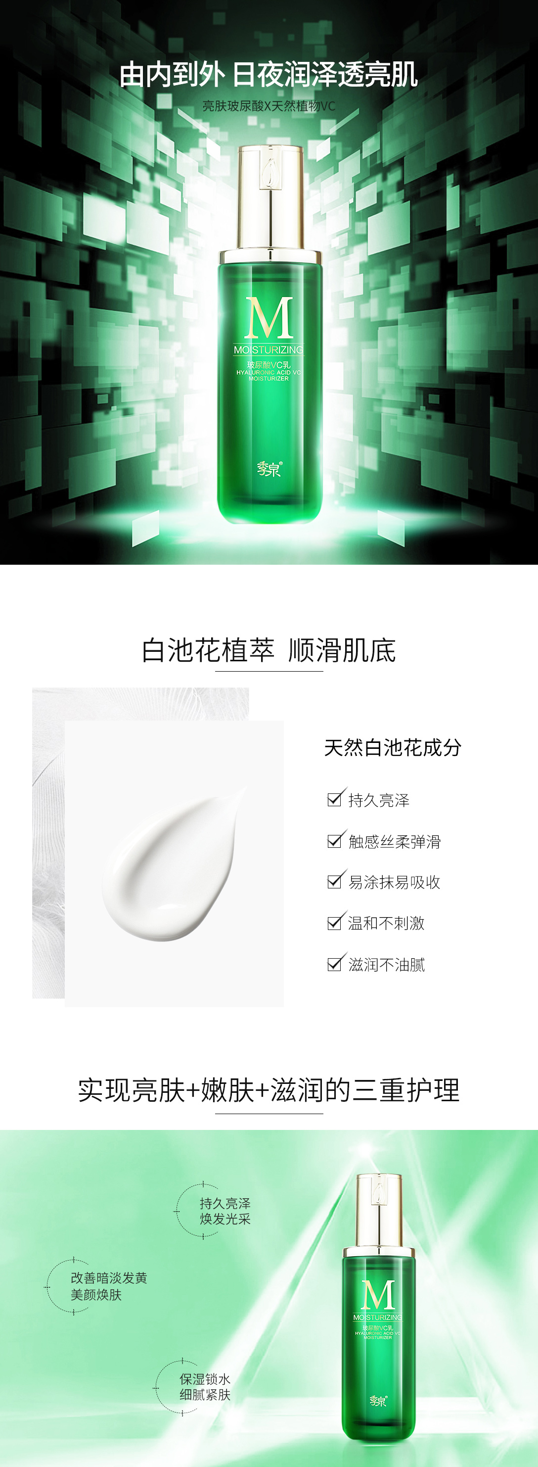 天然植物VC活性成分,层层深入焕发光采,改善肌肤暗淡发黄,由内至外日夜滋养透亮美肌。