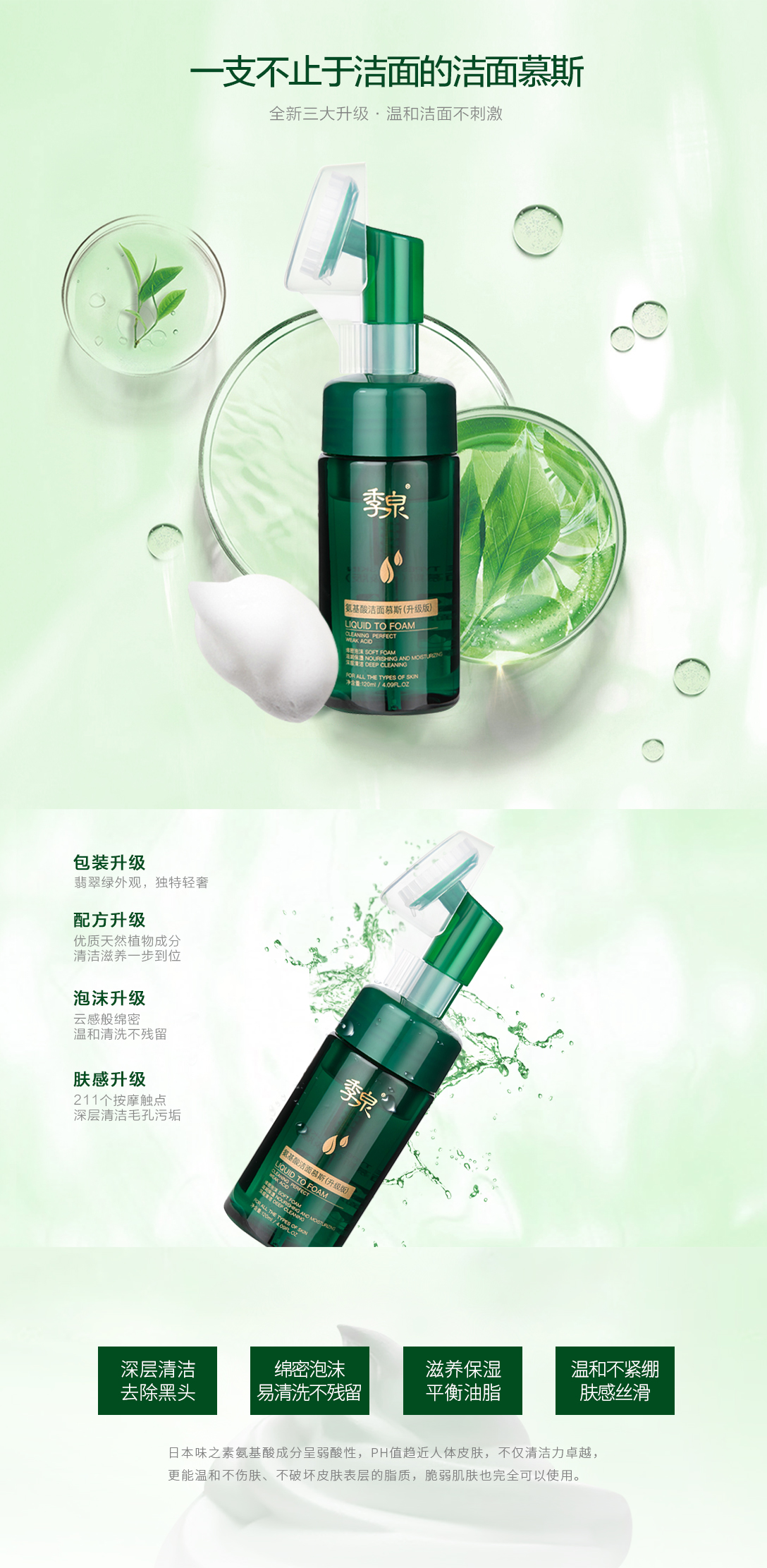1、按压1-2次洁面慕斯,取泡沫置于面部;