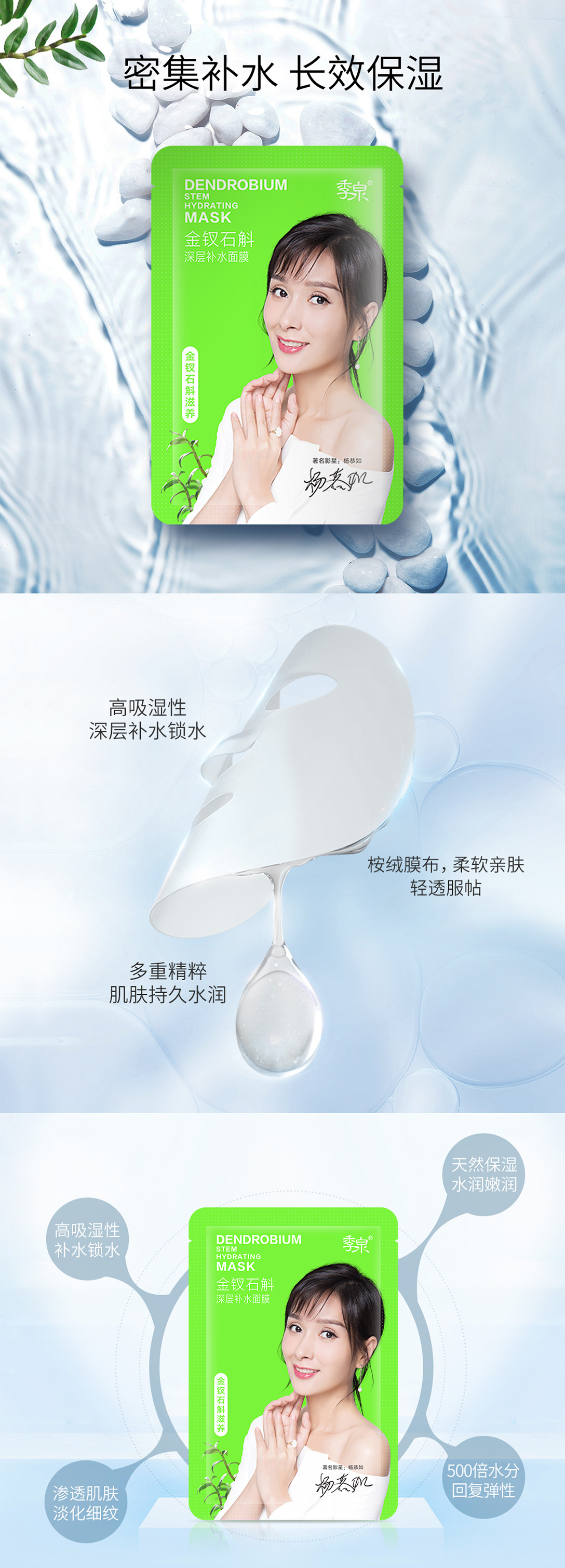 富含金钗石斛提取物、小分子透明质酸等营养成分,海量补水,持久锁水,柔滑体验,轻薄贴肤。