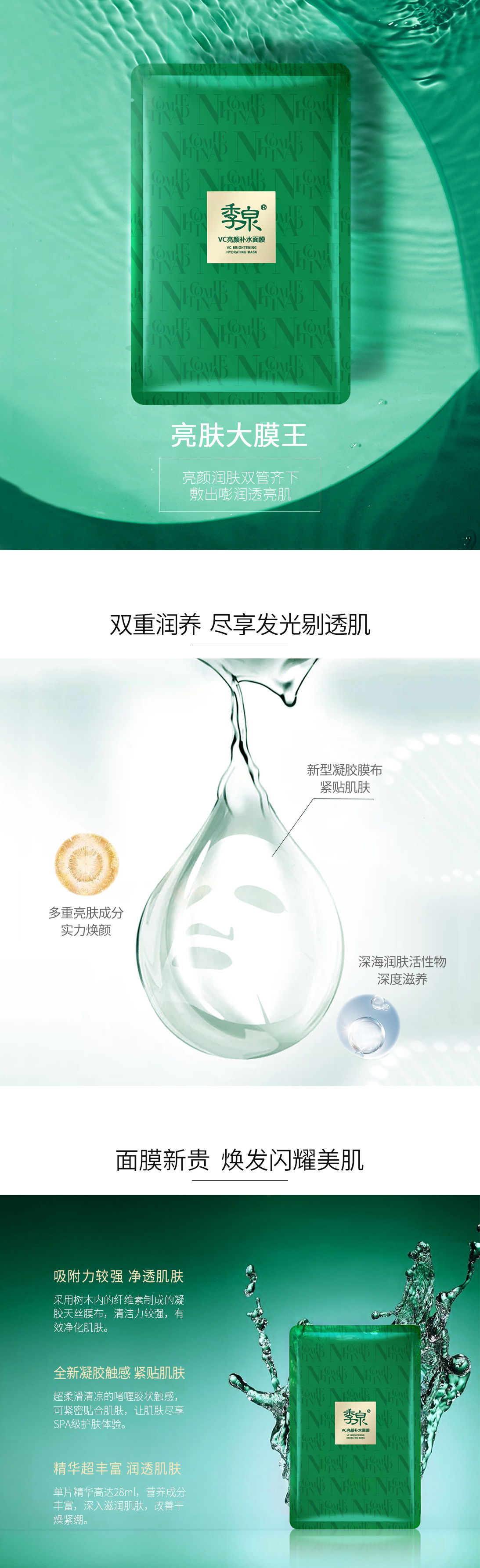4、用清水清洗或用纯净水浸湿后的棉片擦拭干净即可, 建议搭配季泉VC亮颜精华套盒一起使用效果更佳。