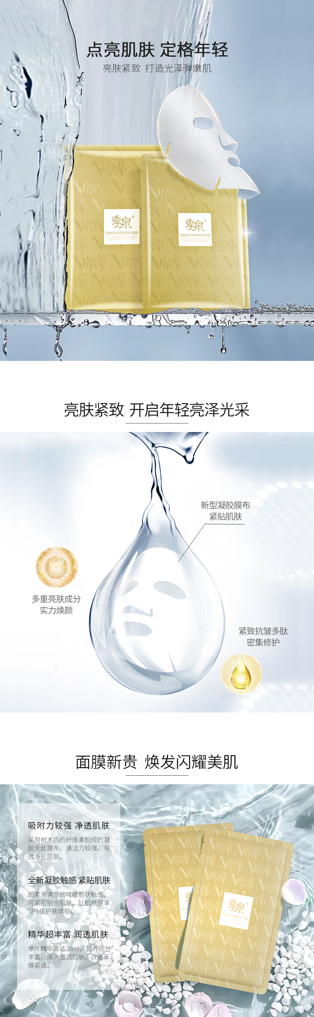 4、用清水清洗或用纯净水浸湿后的棉片擦拭干净即可, 建议搭配季泉鱼子烟酰胺紧致焕亮精华套盒一起使用效果更佳。